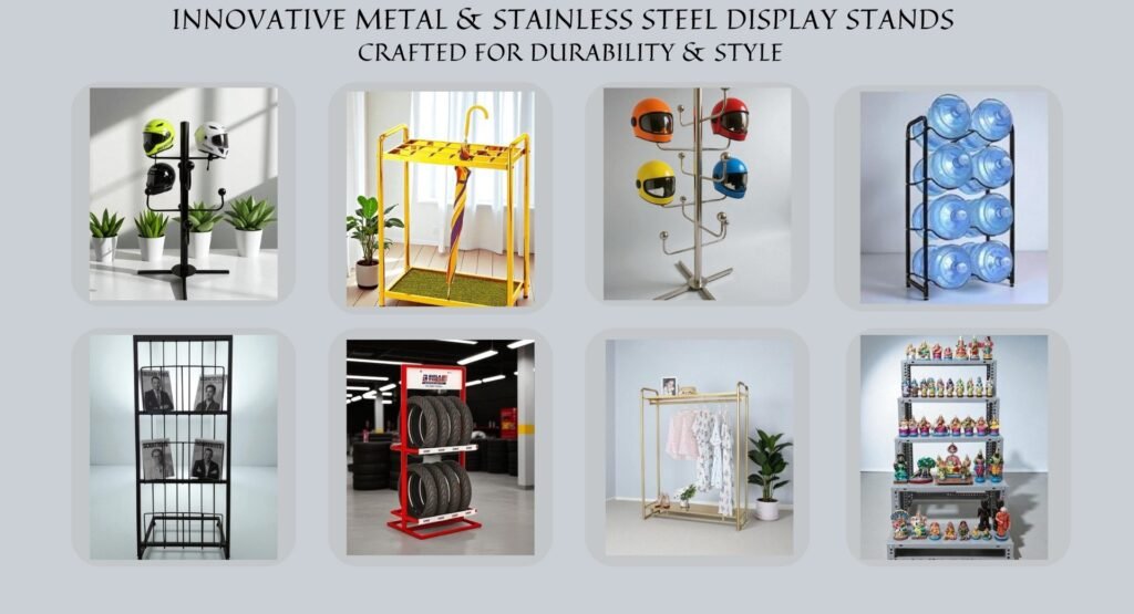 Explore our wide range of premium-quality metal and stainless steel display stands, racks, and storage solutions designed for homes, offices, showrooms, and industries.