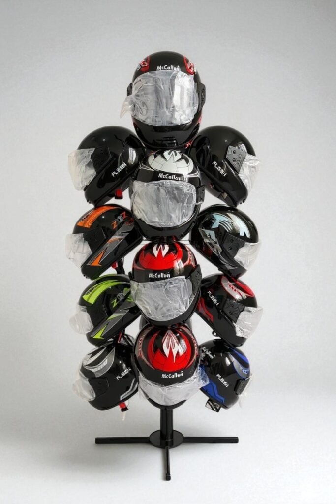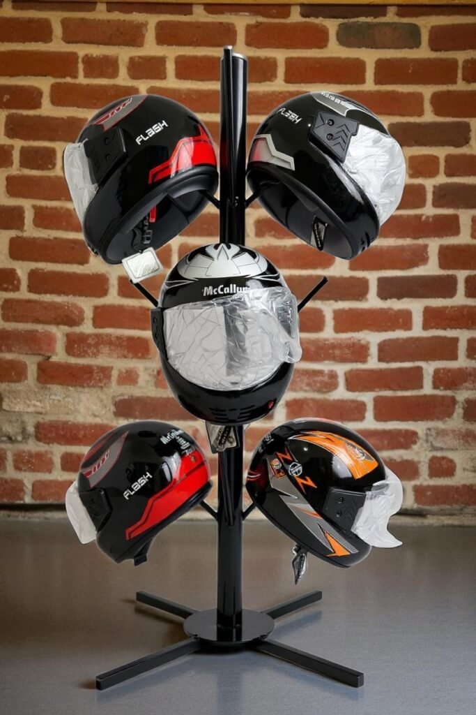At Global Designers, we specialize in manufacturing high-quality Metal and Stainless Steel Helmet Display Stands designed for durability, strength, and modern aesthetics. Our stands are available in various heights ranging from 3 feet to 6 feet, offering display capacity for 8 to 20 helmets — ideal for Office, showrooms, retail stores, exhibitions, and garages. Each display stand is built with precision to ensure stability, easy assembly, and long-lasting performance, making it the perfect solution for organized and attractive helmet presentation.