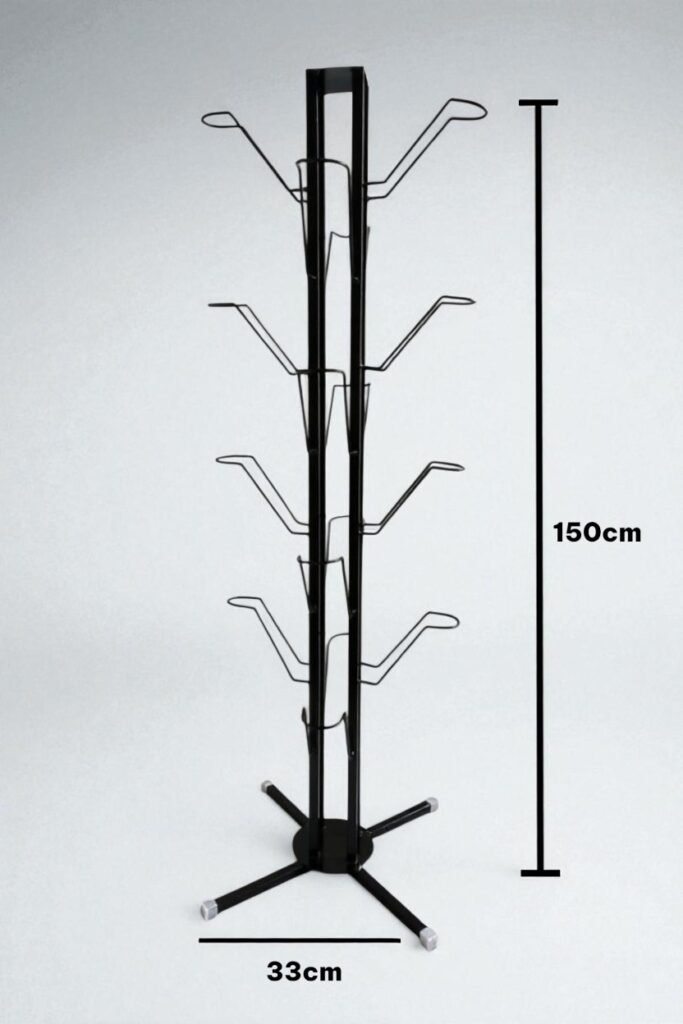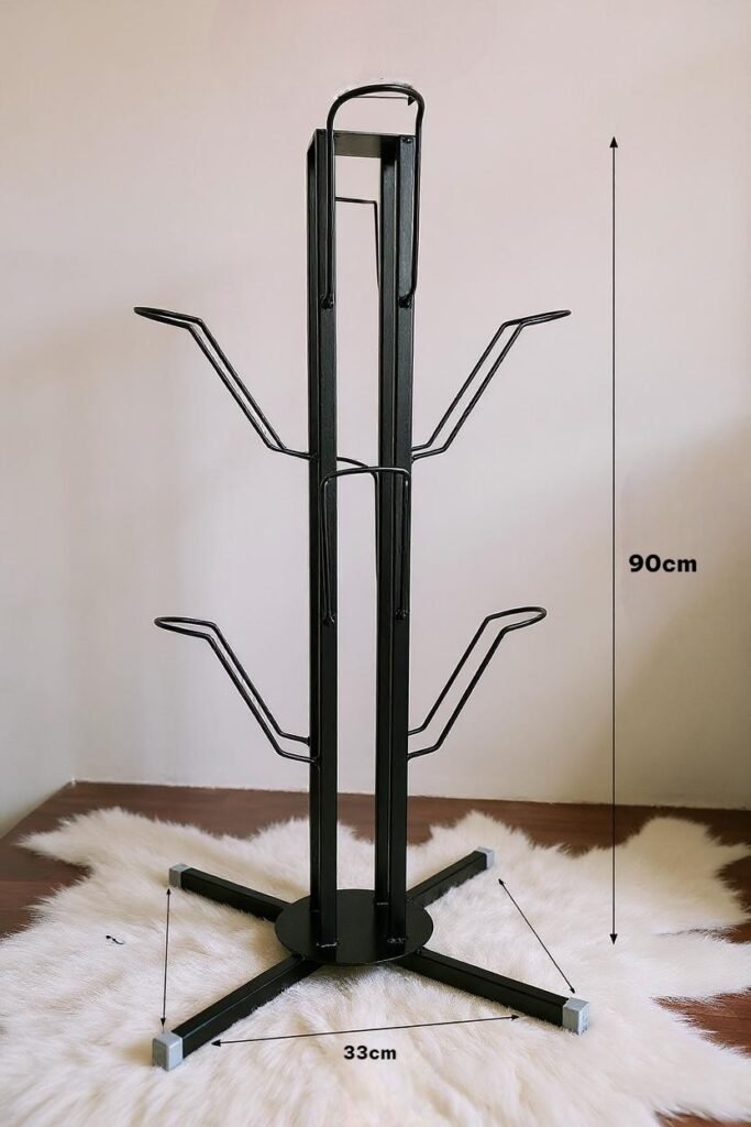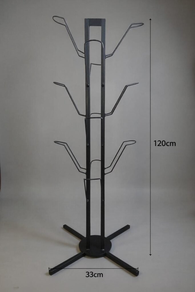 Mild steel Helmet Display Stand-8 Helmets Capacity-3 feet Material: mild steel Model: square type Color: black Finishing: powder coated Height: 3 feet Width: 2 feet Length: 2 feet Helmet storage capacity: 8 Links Material: 18guage (1.2mm) Weight: 5kg |
