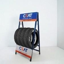 Mild-steel Tyre Display Stand-12 storage capacity-5 feet Material: mild steel Model: GD-TY-BK004 Color: blue, red Finishing: powder coated Height: 5 feet Length: 5 feet, Width: 1.5 feet Tyre storage capacity: 12 |