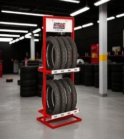 Mild-steel Tyre Display Stand-20 Tyre’s storage capacity-5feet Material: mild steel Model: GD-TY-BK003 Color: Blue, Red Finishing: powder coated Height: 5 feet Length: 5 feet, Width: 1.5 feet Tyre storage capacity: 20 |