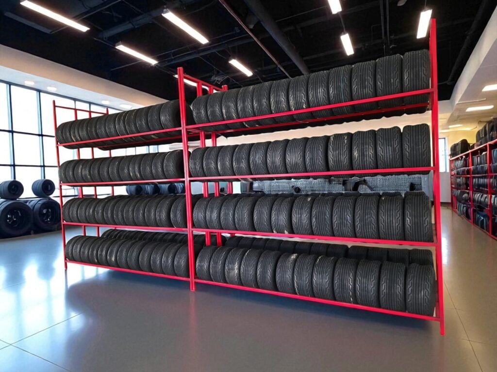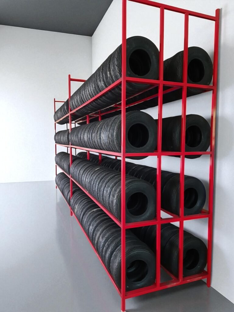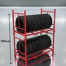 Mild-steel Tyre Display Stand-40 Tyre’s storage capacity-5feet Material: mild steel Model: GD-TY-CR005 Color: Blue, Red Finishing: powder coated Height: 5 feet Length: 6 feet, Width: 4 feet Tyre storage capacity for double: 40 |